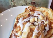 BANANA MACADAMIA PANCAKES WITH COCONUT SYRUP