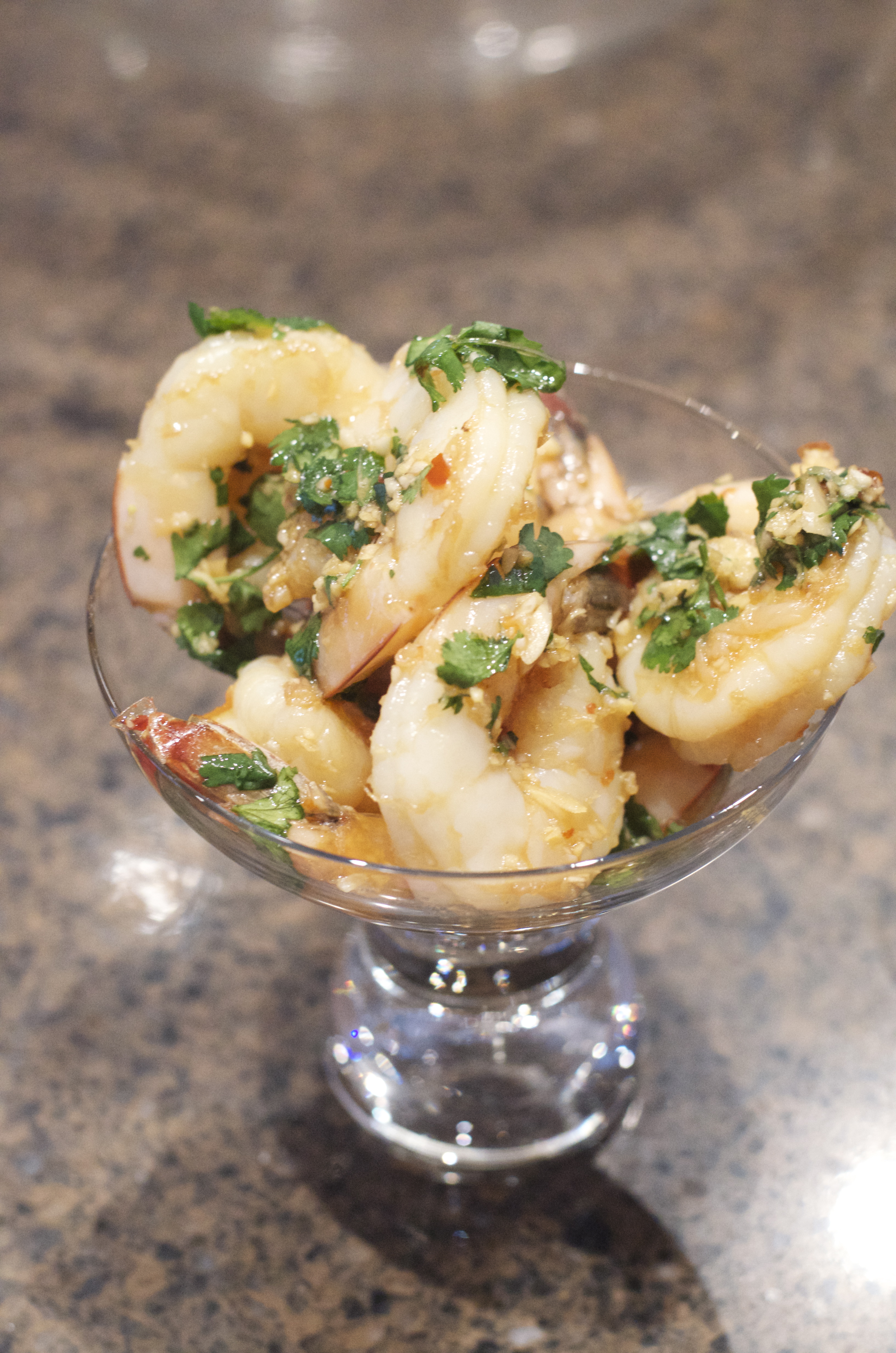 4 hours before serving add shrimp to marinade and occasionally stir