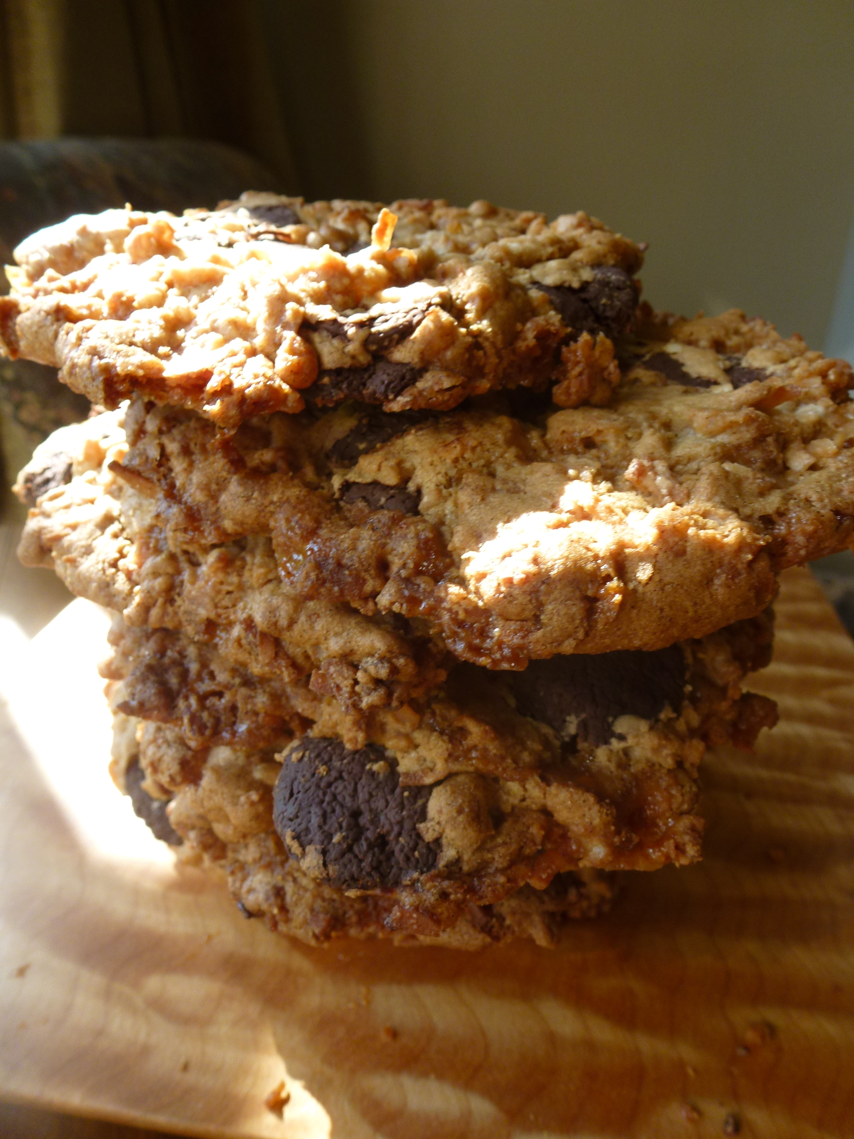 Stir in toasted coconut, skor bits, and chocolate chips.