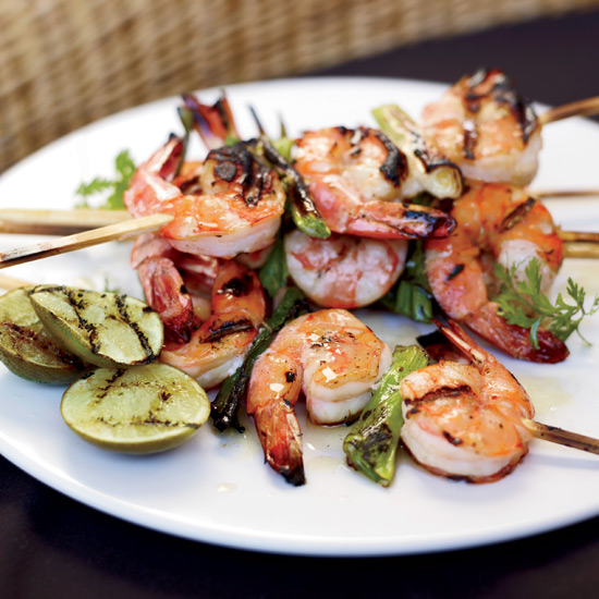 3. Thread the shrimp and green onions on skewers and grill on medium high heat, turning once, until cooked through, about 5 minutes.