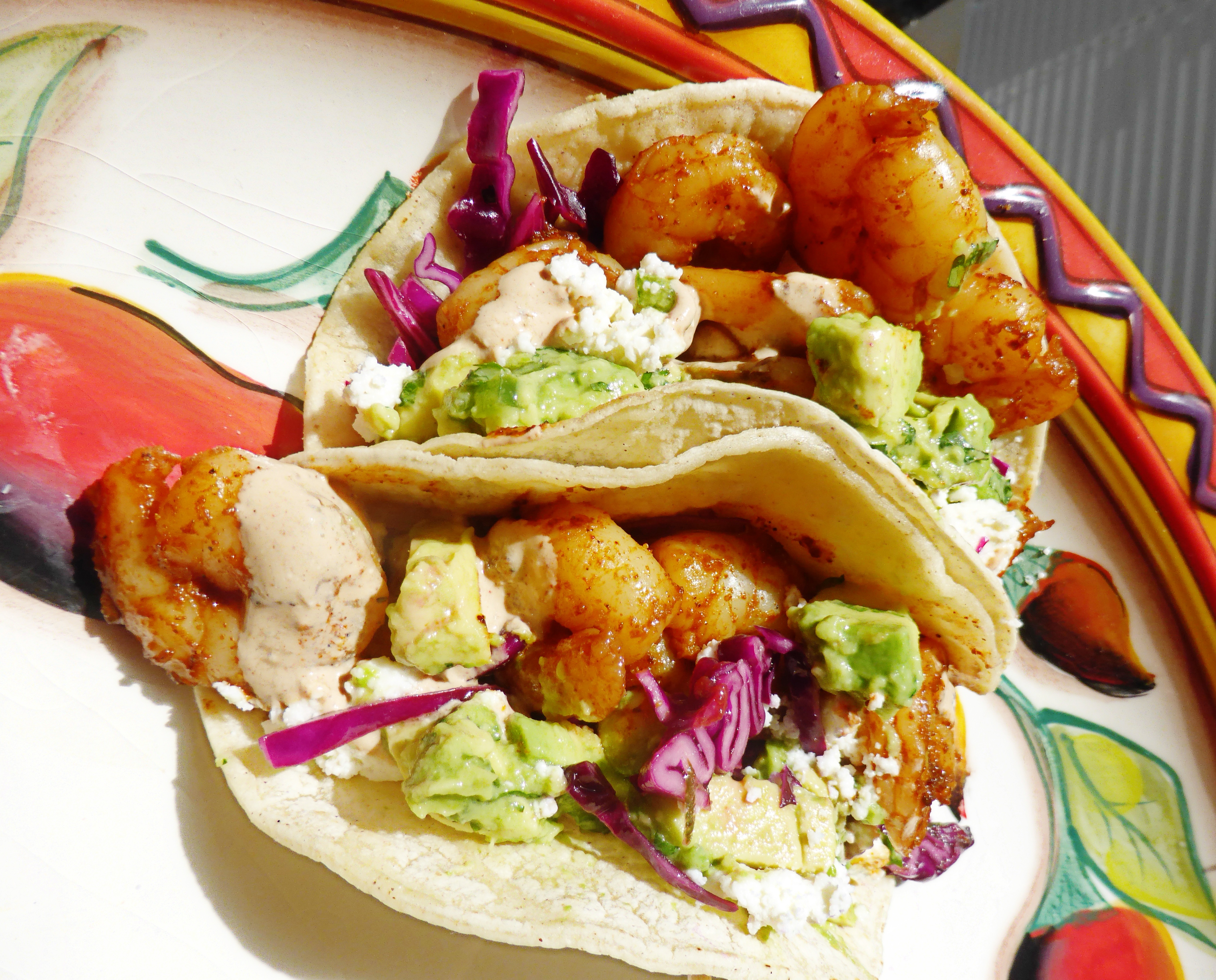 7. Layer cabbage, shrimp, avocado and cotija on the taco shell and drizzle with chipotle crema.